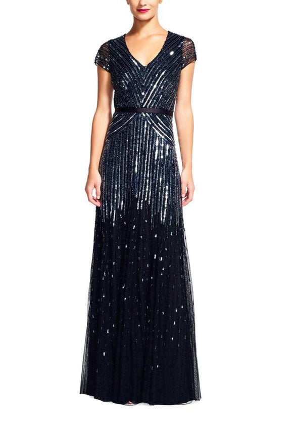 Grey Lustre Short Sleeves Embellished Gown (UK 8)