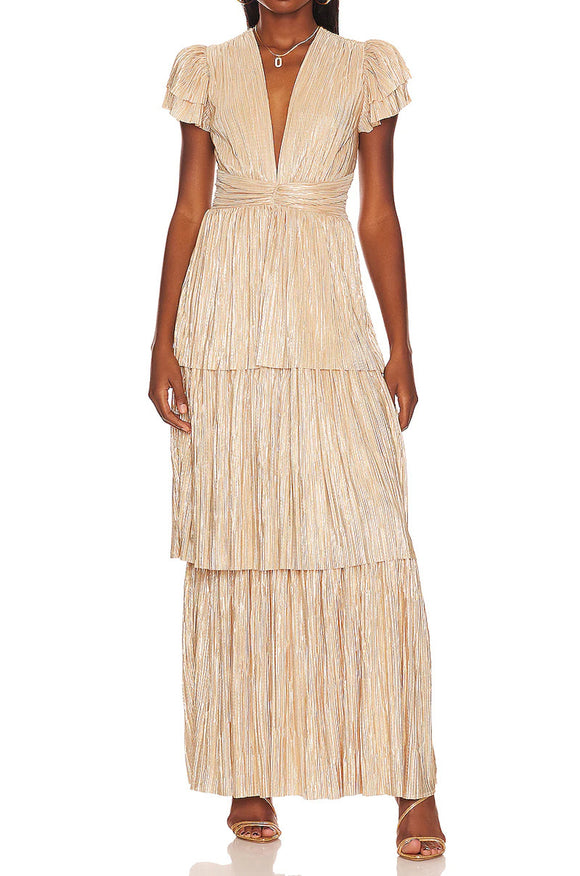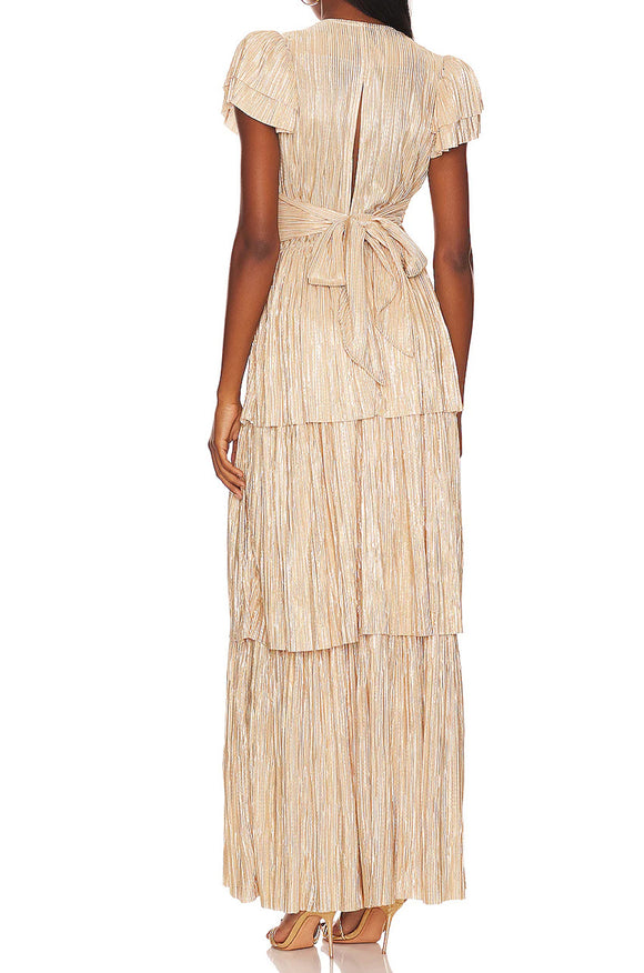 Gold Beaded Back Slit Gown