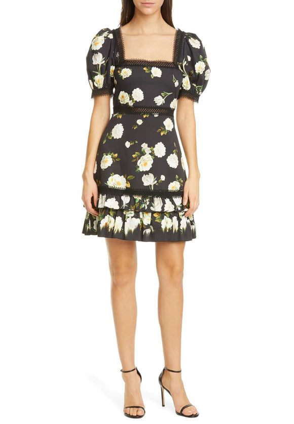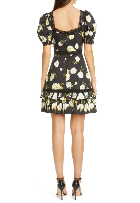 Lilac Short Sleeves Floral Lace Tiered Maxi Dress