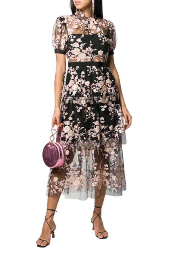 Light Grey Tie Back Cami Floral Embroidered Maxi Dress