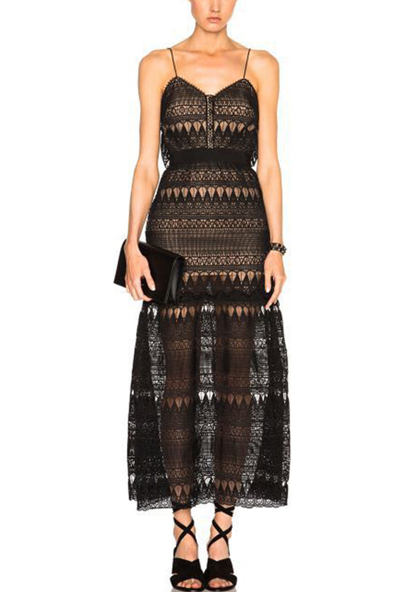 Pink Andromeda Long Sleeves Embellished Maxi Dress
