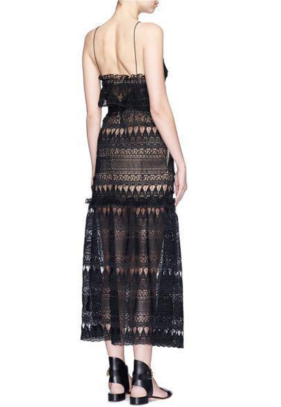 Navy Ruffle Lace Velvet Trimmed Long Sleeves Mini Dress (Pre-loved)