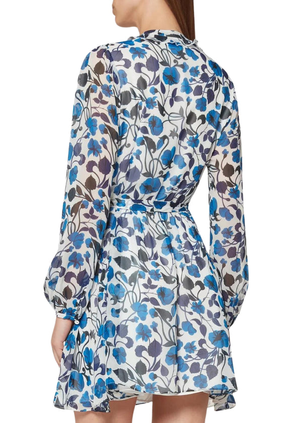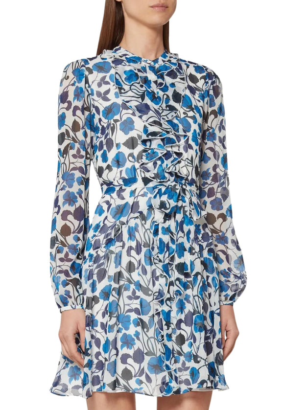 Nude Floral Beaded Dress with Sheer Flutter Sleeves