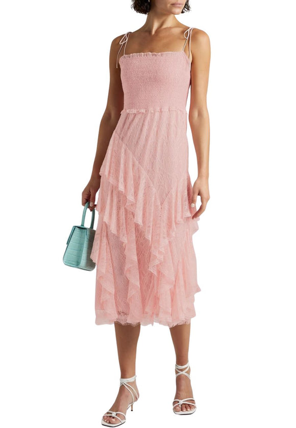 Pink Elsie Ribbon Embroidered Floral Mini Dress
