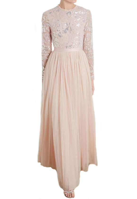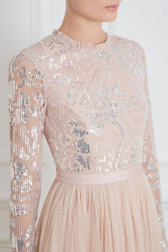Silver Andromeda Long Sleeves Embellished Midi Dress