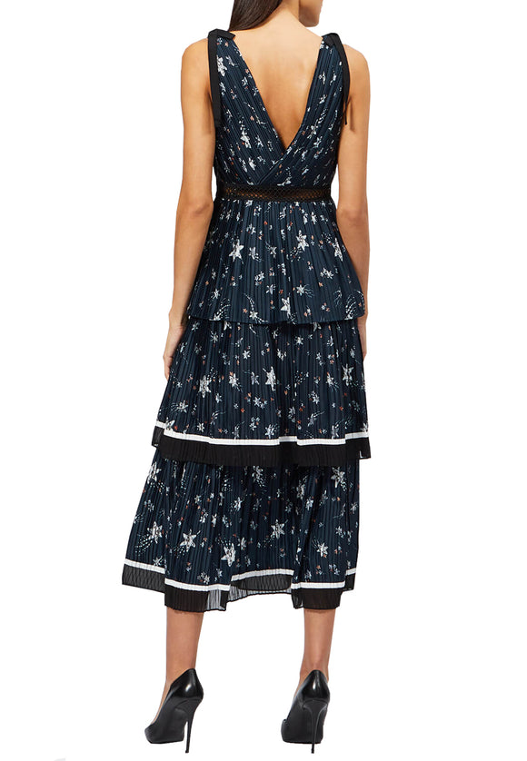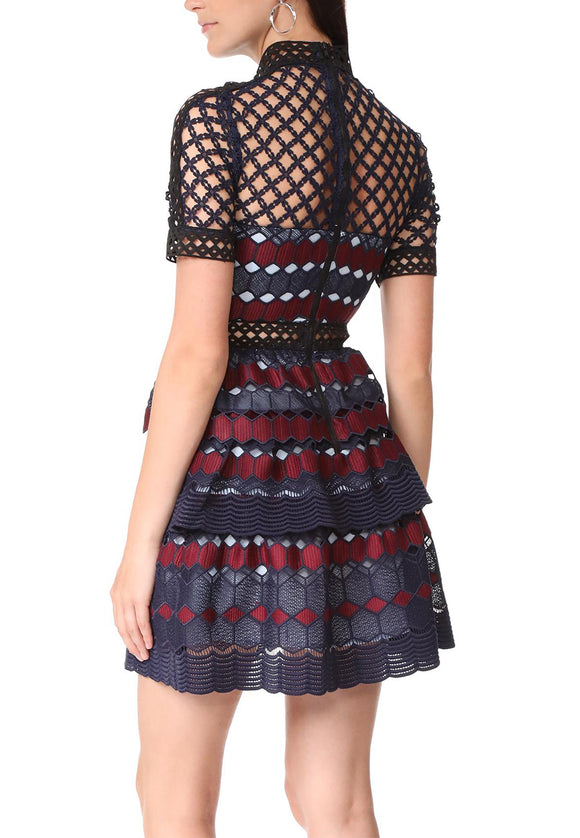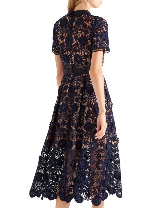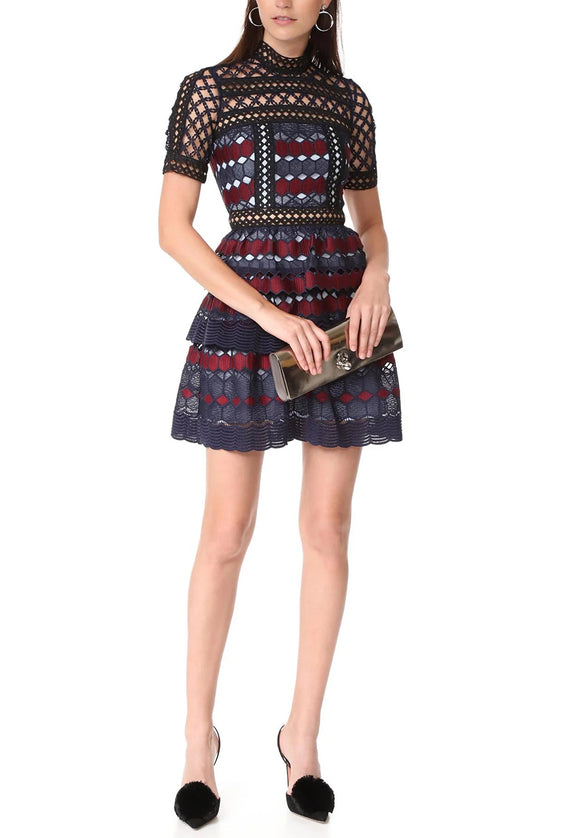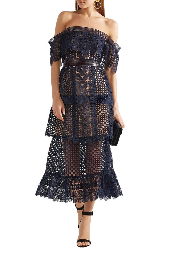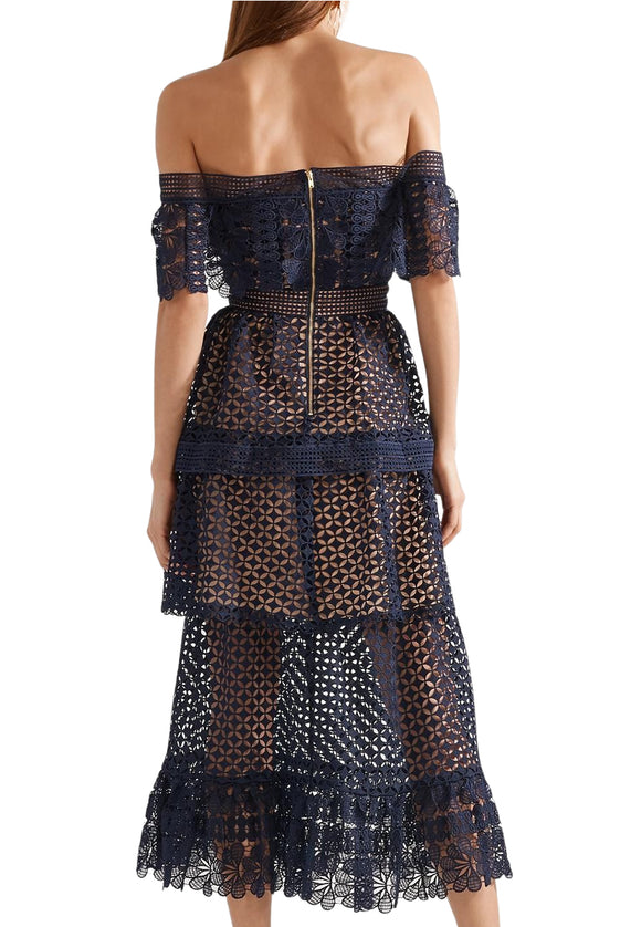 Lilac Short Sleeves Floral Lace Tiered Maxi Dress