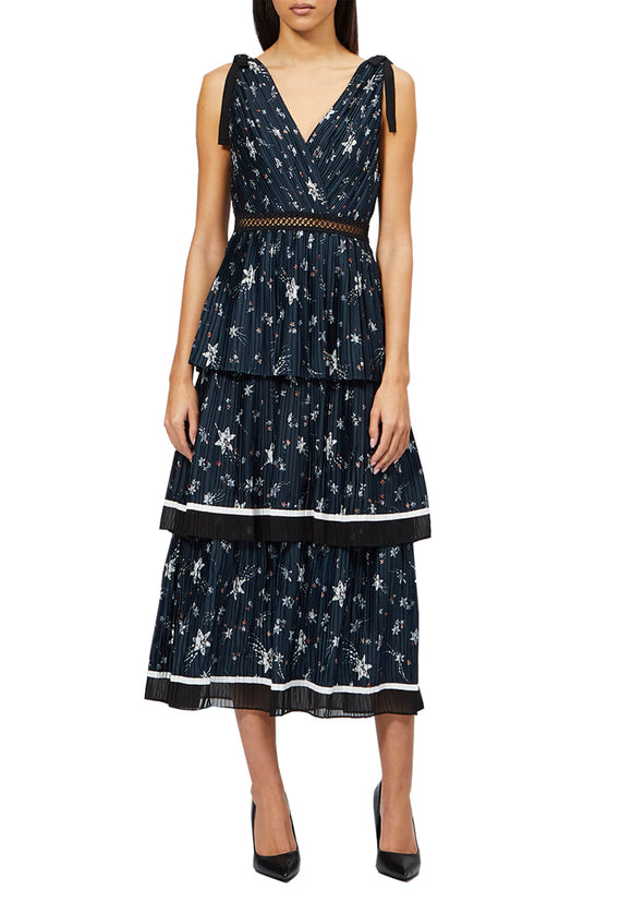 Black Sequins Embellished Short Sleeves Belted Mesh Midi Dress