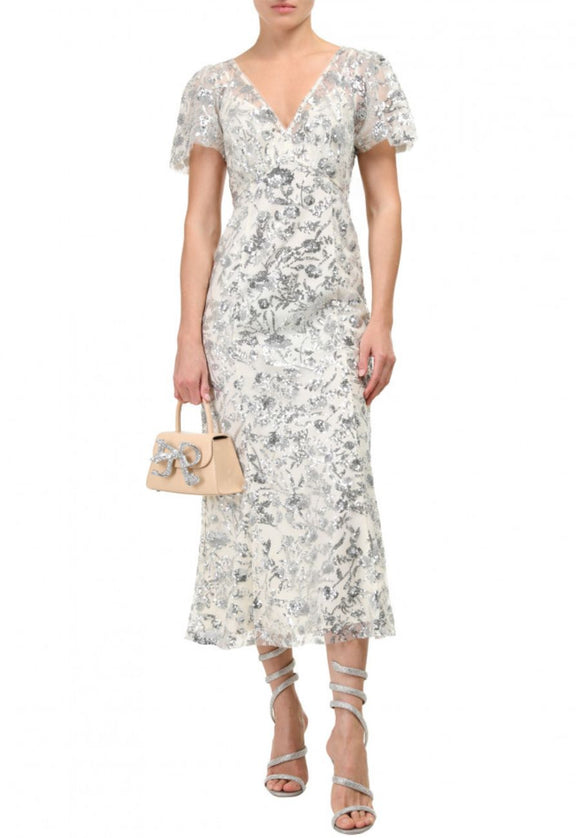 Silver Andromeda Long Sleeves Embellished Midi Dress