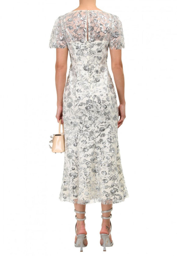 Silver Andromeda Long Sleeves Embellished Midi Dress (Pre-loved)