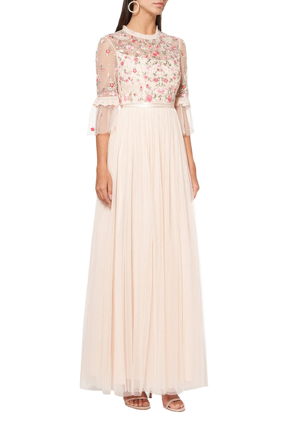 Rose Gold Godet Floral Embellished Gown
