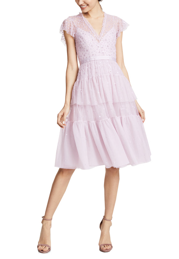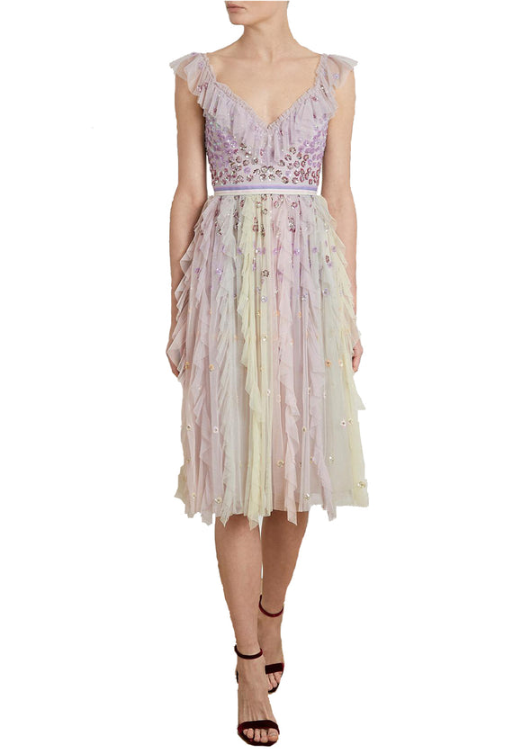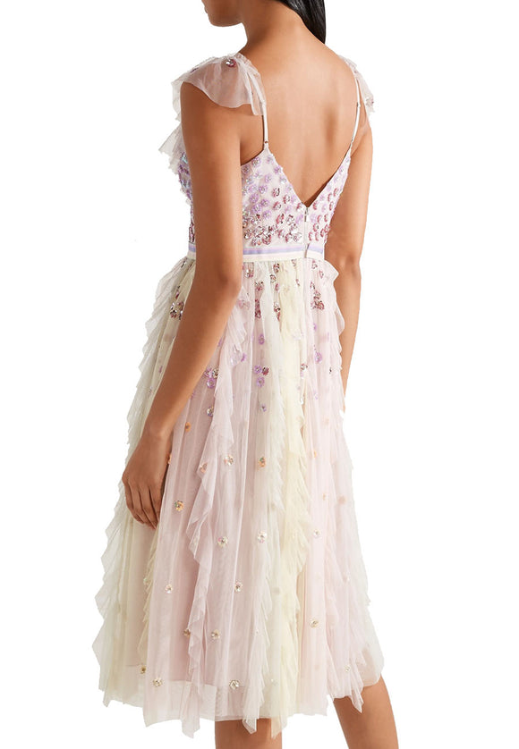 Lavender Rainbow Ditsy Embellished Tulle Gown (UK 4)
