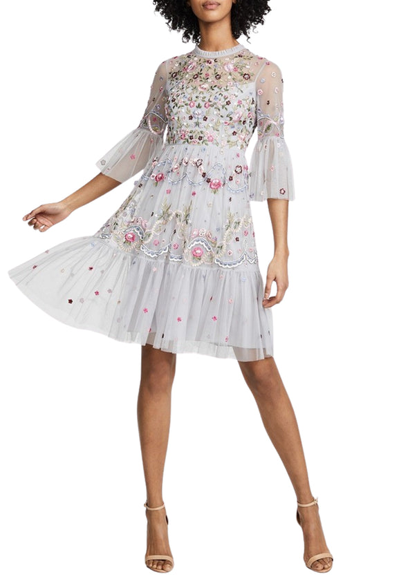Grey Lustre Short Sleeves Embellished Gown (UK 8)