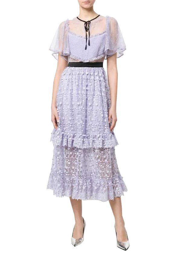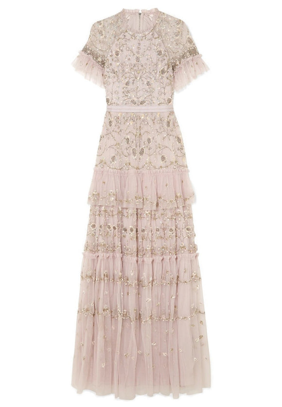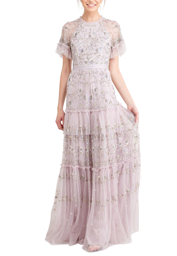 Lilac Shimmer Ditsy Floral Embellished Gown