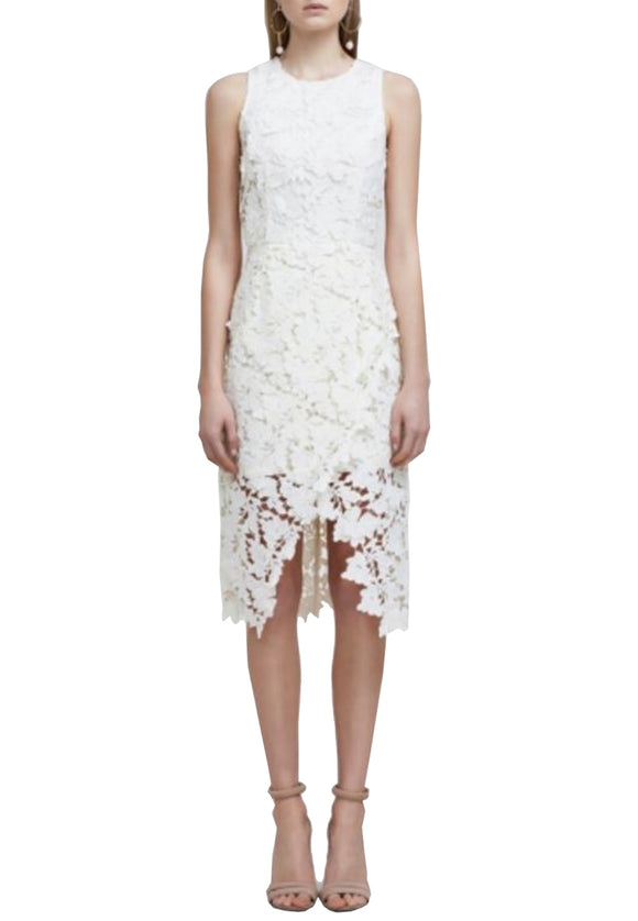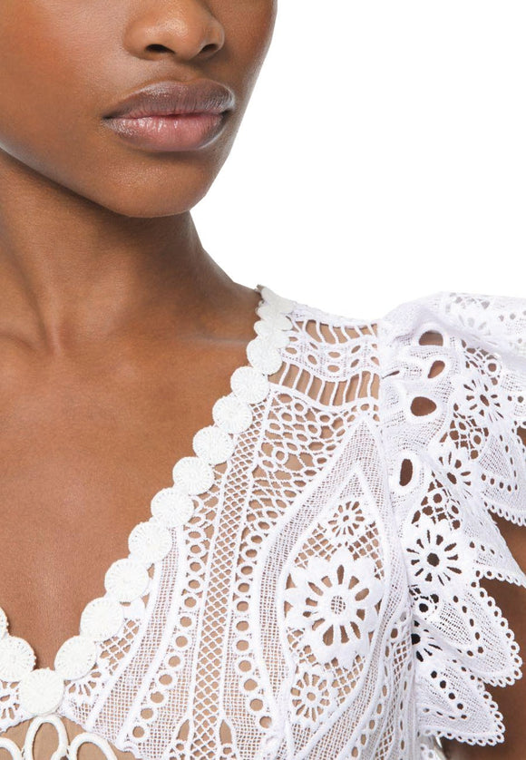 Red Christelle Short Sleeves Geometric Lace Mini Dress (Pre-loved)
