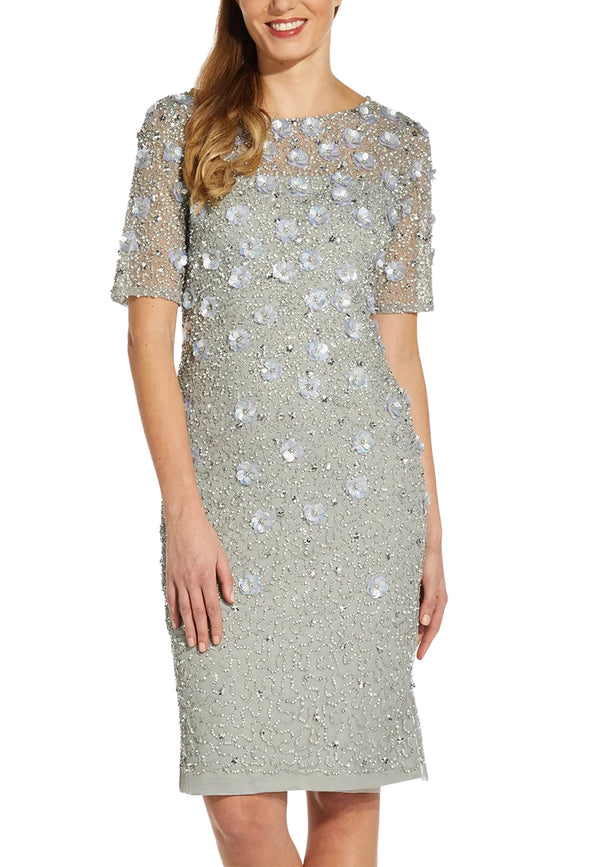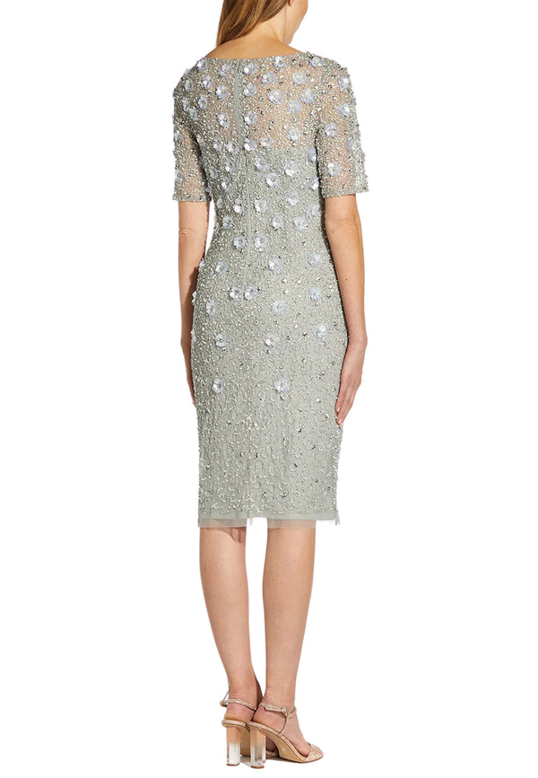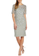 Light Grey Flowers Applique Short Sleeves Midi Dress